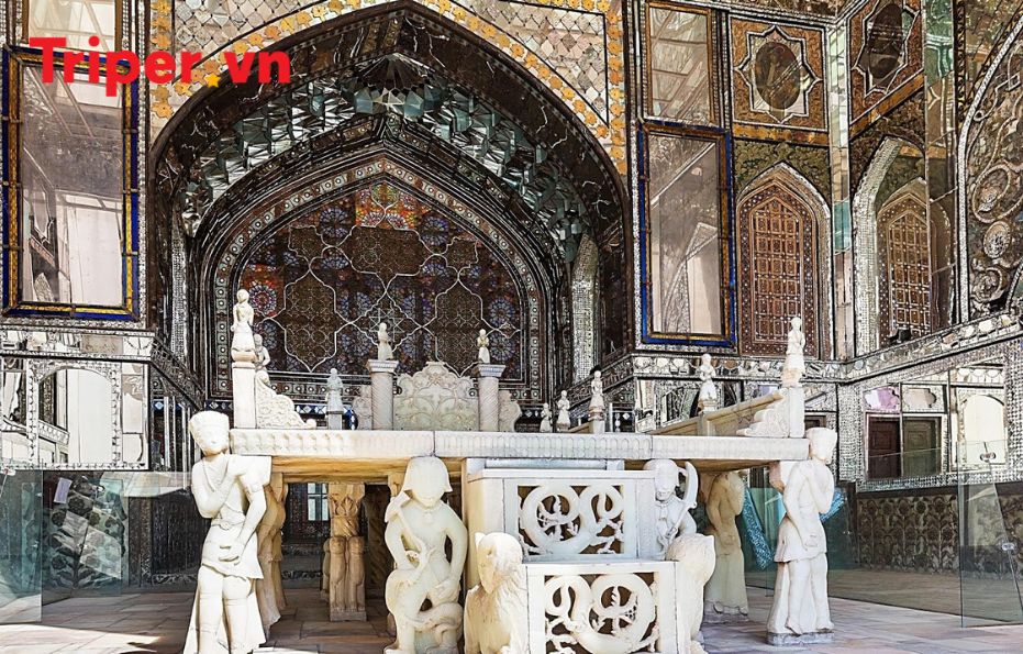 Sau bữa trưa, Quý khách khám phá Kākh-e Golestān (کاخ گلستان / Cung điện Golestan), cung điện nguy nga được xây dựng lần lượt qua rất nhiều đời khác nhau và hoàn thiện vào năm 1865, trở thành nơi ở của hoàng gia Qajar. Khu vườn của cung điện là ốc đảo mát mẻ và yên bình giữa lòng thành phố. Golestan là kiệt tác của kiến trúc cung đình Iran cận đại, kết hợp tinh tế nghệ thuật truyền thống Ba Tư với các yếu tố baroque. Ngắm nhìn Talar-e Brelian (Sảnh lóng lánh) với lối trang trí gọi là Ayeneh-kari, những chiếc gương cắt tinh xảo lắp ráp với nhau theo hình dạng hình học, thư pháp hoặc lá, phản chiếu ánh sáng thành các họa tiết trừu tượng phức tạp hoặc phản chiếu lấp lánh. Ấn tượng sâu sắc khi chiêm ngưỡng Taxt-e Marmar (Ngai vàng đá cẩm thạch), bao gồm 65 mảnh đá cẩm thạch. Các giá đỡ của ngai vàng được chạm khắc theo hình dạng của đàn ông, phụ nữ, tiên nữ và ác quỷ.