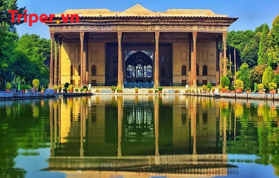 Sau bữa trưa, đoàn ghé thăm dinh thự Hašt-Behešt (Tám Thiên đường), được xây giữa thế kỷ XVII làm hậu cung cho các phi tần cư ngụ. Nó có hình bát giác với tám phòng vây quanh một sảnh ở giữa. Tiếp theo, thú vị khám phá Chehel Sotoun (Lâu đài 40 cột), mang nét đẹp mảnh mai với khu vườn duyên dáng bao quanh. Lâu đài được vua Shah Abbas II cho xây dựng dùng để tiếp đón các chức sắc và đại sứ. Tên gọi lấy cảm hứng từ hai mươi cột gỗ thanh mảnh đỡ mái trần xinh xắn ở lối vào, khi phản chiếu trong nước của đài phun nước, người ta nói rằng trông giống như có bốn mươi cột . Chehel Sotoun là một phần của định danh di sản thế giới, chung với Vườn Eram ở Shiraz, được UNESCO công nhận từ năm 2011. Đoàn dành thời gian còn lại tản bộ dọc bờ sông Zayanderud khám phá 3 cây cầu lịch sử: Pol-e Shahrestan niên đại thế kỷ X, xưa nhất Isfahan; Si-o-Seh Pol (Cầu 33 mái vòm) xây năm 1602. Trong các cây cầu ở Isfahan, xinh đep nhất là Pol-e Xāju (Cầu Khaju) dài 137 m, rộng 12 m, được xây vào năm 1650.
