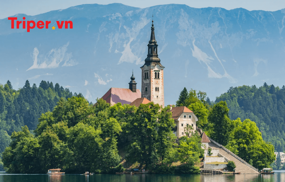 Điểm nhấn đắt giá nhất trong tour đi Slovenia chính là Hồ Bled. Hãy tưởng tượng một hồ nước xanh màu ngọc bích, nằm lọt thỏm giữa những dãy núi Alps hùng vĩ, và ngay chính giữa hồ là một hòn đảo nhỏ với nhà thờ cổ kính.