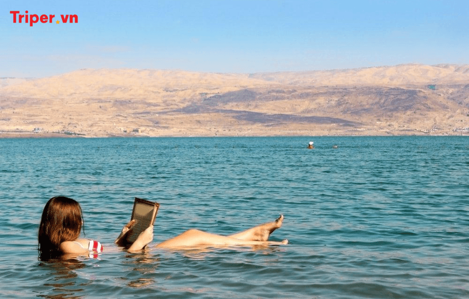 Sau đó, di chuyển tham quan Biển Chết, còn được gọi là “Cái rốn của địa cầu” bởi nơi đây nằm dưới mực nước biển 417m, là điểm thấp nhất trên bề mặt trái đất và có hàm lượng muối cao nhất, mặn nhất thế giới. Biển chết có sức lôi cuốn đặc biệt với du khách khắp nơi trên thế giới bởi sự đặc biệt của nó, không một loài động thực vật nào có thể tồn tại được trong môi trường có độ mặn cao như thế nhưng ngược lại nó rất tốt cho sức khỏe. Tại đây, Quý khách sẽ có dịp trải nghiệm cảm giác tự do thả nổi cơ thể trên mặt nước để đọc báo hay ngắm vẻ đẹp của hệ thiên nhiên, sinh thái hùng vĩ quanh biển Chết.