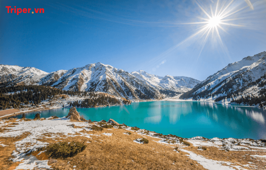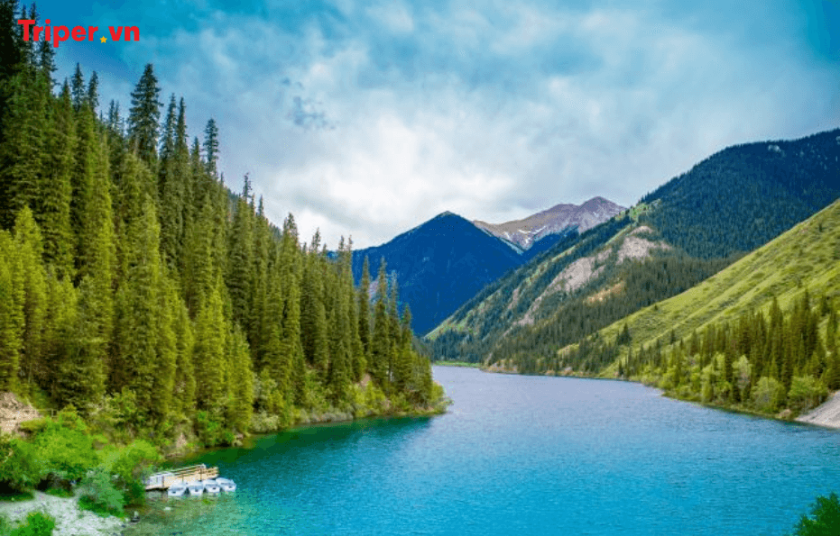 Hồ Kolsay – cụm ba hồ nước nằm trong dãy núi Tian Shan, được hình thành do các trận lở đất cách đây hàng nghìn năm. Hồ Kolsai được biết đến với vẻ đẹp thanh bình và hoang sơ. Nước hồ có màu xanh ngọc lam đẹp như tranh vẽ, được bao quanh bởi những ngọn núi phủ tuyết trắng