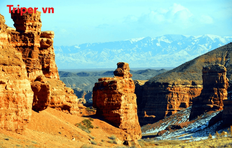 Hẻm núi Charyn – kỳ quan thiên nhiên nằm ở Kazakhstan, được biết đến là một trong những viên ngọc của đất nước, trải dài 154km được hình thành bởi dòng sông Charyn, một con sông nhỏ bắt nguồn từ dãy núi Thiên Sơn khu vực Almaty. Hẻm núi nổi bật với những vách đá đỏ và vàng được hình thành bởi tác động của gió, nước và thời tiết trong hàng triệu năm, là nơi có nhiều hang động, thác nước và hồ nước.