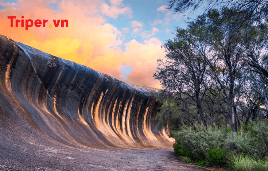 Bạn đã bao giờ thấy một con sóng biển cao 15 mét, dài 110 mét bị đóng băng giữa đất liền chưa? Đó chính xác là những gì bạn sẽ thấy tại Wave Rock. Đây là một khối đá granite khổng lồ, trải qua hàng triệu năm bị bào mòn bởi gió và nước mưa, tạo nên hình thù một con sóng khổng lồ đang chực chờ đổ ập xuống.