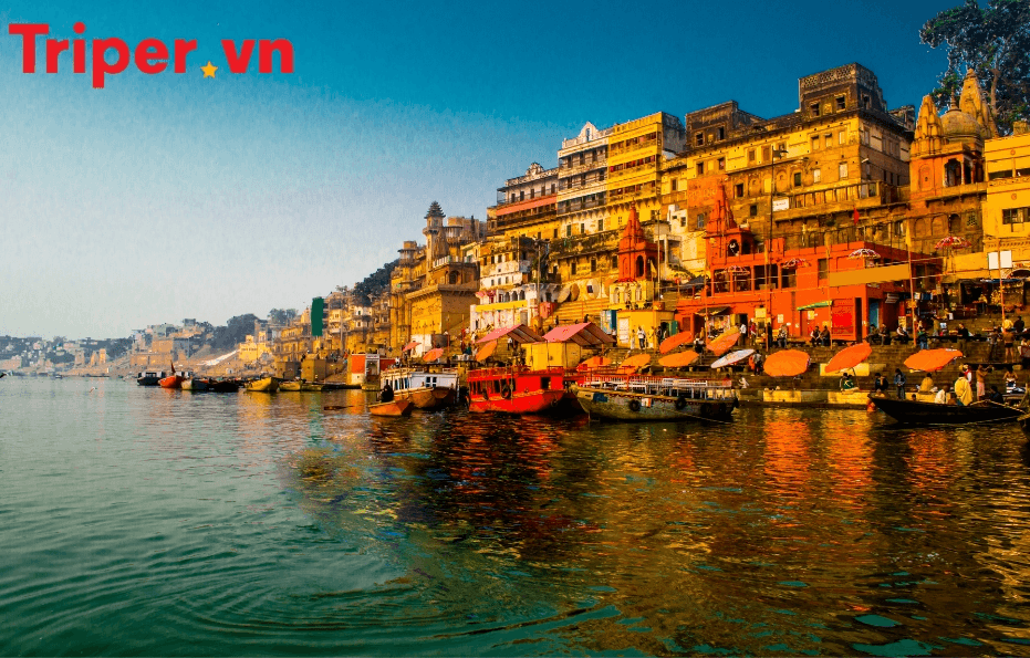 Trải nghiệm đi thuyền trên sông Hằng vào buổi sớm mai là điều bắt buộc trong Tour du lịch Ấn Độ. Khi ánh mặt trời dần hé lộ, bạn sẽ chứng kiến nghi lễ tắm gội tẩy trần của người dân Hindu giáo. Đặc biệt, buổi tối là lúc diễn ra lễ hội Ganga Aarti – một buổi lễ dâng đèn rực rỡ và huyền ảo. Sự giao thoa giữa âm nhạc, lửa và đức tin tại đây sẽ khiến bạn phải rùng mình vì sự linh thiêng.