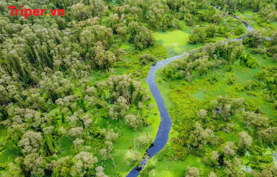 Thuyền đưa Quý khách lướt trên những đám bèo lục bình; xa xa, vài con chim dạn dĩ đang tìm mồi vẫn không hề tỏ ra lo lắng dù thuyền Quý khách đi qua. Trên những ngọn cây tràm cao vút là vô số những tổ chim với hàng ngàn con chim đang trú ẩn.