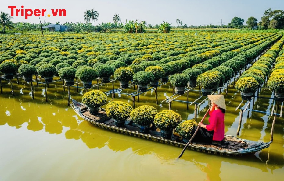 11:30 – 12:30: Đoàn dùng bữa trưa tại TP. Sa Đéc. Sau đó, Đoàn đến trung tâm Làng Hoa Sa Đéc, Quý khách bắt đầu tham quan điểm du lịch đầu tiên là Khu du lịch miệt vườn Happyland Hùng Thy. Không gian ở Happy-land Hùng Thy sẽ cho Quý khách nhiều bức ảnh đẹp với background là hàng ngàn bông hoa khoe sắc. Không những thế, ở KDL này còn có nhiều trò chơi dân gian vui nhộn, hấp dẫn, đúng chất sông nước miền Tây để du khách vui chơi trải nghiệm như bơi xuồng, bơi thúng, đi cầu thập bát, chạy xe đạp qua cầu khỉ, đu dây qua sông, đi cầu lắc, tát ao bắt cá v.v…