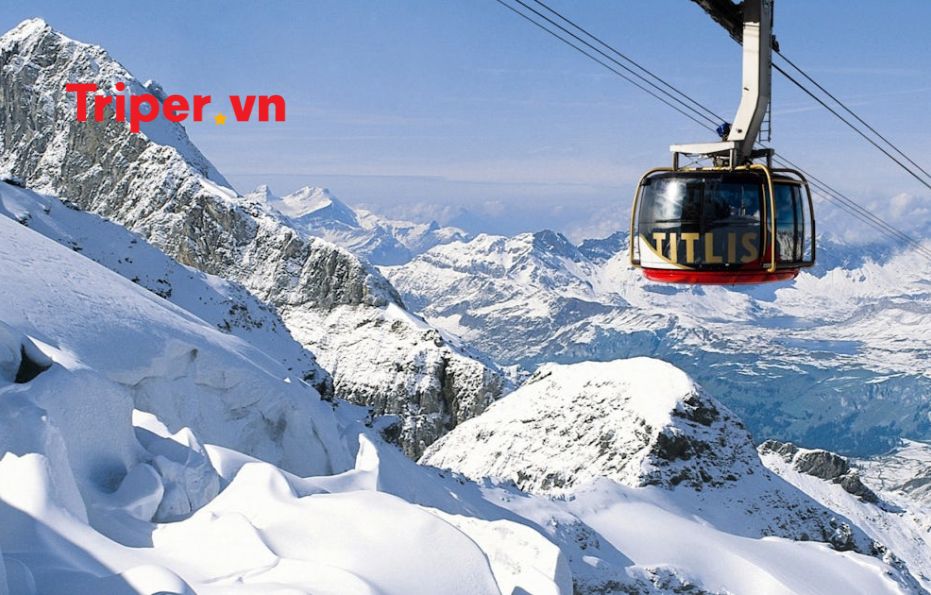 Du khách cũng có thể trải nghiệm đi cáp treo lên núi Titlis (Tự túc chi phí), khám phá cáp treo quay vòng Rotair 360 độ đầu tiên trên thế giới, ngắm nhìn toàn cảnh núi tuyết tuyệt đẹp từ trên cao. Núi Titlis được mệnh danh là nơi thiên thần cư ngụ bởi không gian tuyết trắng bao la. Đi cáp treo lên núi tuyết, du khách sẽ cảm nhận rõ vẻ đẹp khác biệt, bắt đầu từ thảm xanh cỏ hoa, càng đi lên cao, cảnh quan chuyển dần sang một màu tuyết trắng của sông băng lượn quanh đỉnh Titlis.