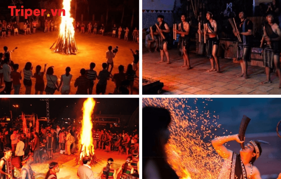 18h00: Đoàn dùng cơm trưa tại nhà hàng Châu Loan, tham gia Chương trình lửa trại giao lưu Không Gian Văn Hóa Cồng Chiêng hòa mình cùng đồng bào dân tộc Lạch bên ánh lửa bập bùng cùng chén rượu Cần, thưởng thức thịt rừng nướng, cùng nắm tay kết vòng tròn nhảy múa, ca hát, thổi Tù Và…(Chi phí bao gồm trong giá tour).