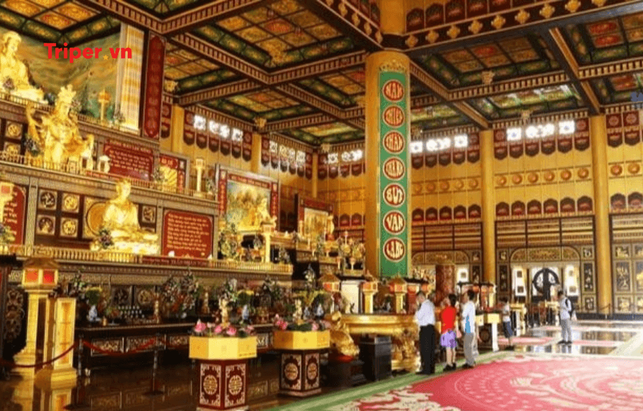 Đền Thờ Đại Nam Quốc Tự - còn gọi là Kim Điện với điểm nhấn nổi bật là các pho tượng thờ, phù điêu và các vật dụng thờ cúng đều được dát vàng.