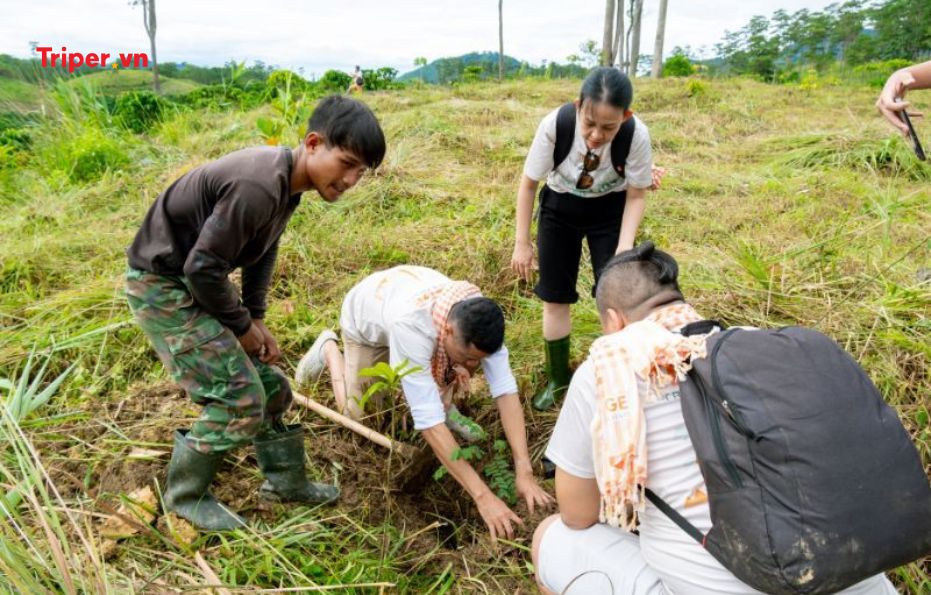 - Đoàn di chuyến đến địa điểm trồng cây, quý khách tham gia hoạt động trồng cây gây rừng.