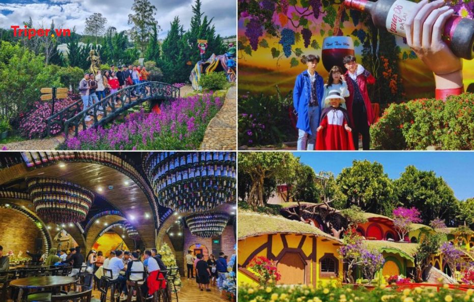 - 13h00: Đoàn di chuyển về lại trung tâm thành phố, tham quan Hầm Rượu Vang Vĩnh Tiến - Được mệnh danh là hầm rượu Vang lớn nhất và được đầu tư hiện đại nhất ở Đà Lạt, với chiều dài hàng trăm mét, cùng hơn 15.000 chai rượu được bài trí tinh tế. Quý khách còn được tìm hiểu quy trình làm và thưởng thức rượu vang.