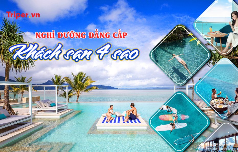 Hoặc quý khách về nghỉ ngơi tại Khách sạn 4* biển, đẹp, có hồ bơi cực sang chảnh và các tiện ích đẳng cấp.