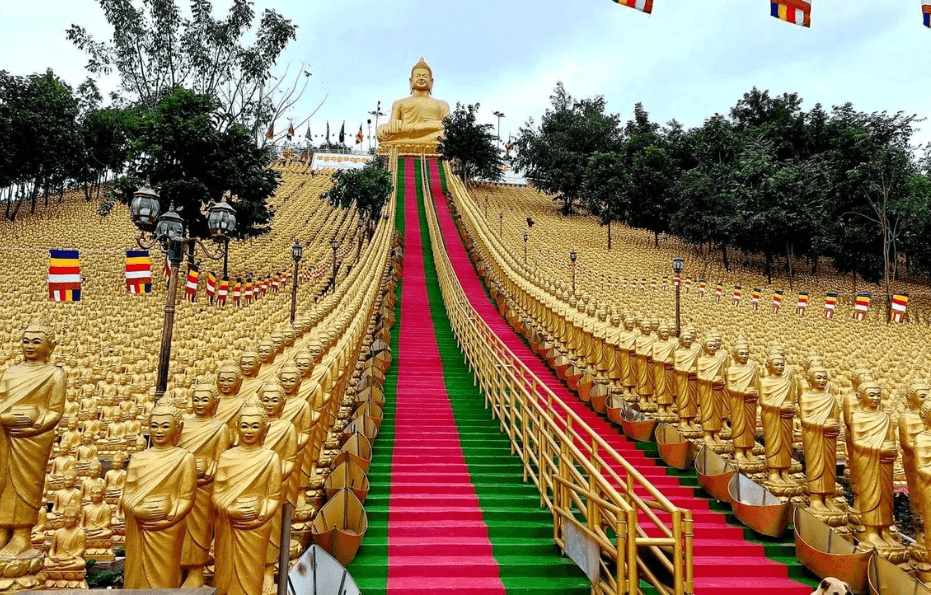 Khi tham gia Tour Campuchia 2 ngày 1 đêm, bạn sẽ thực sự choáng ngợp trước cảnh tượng hàng ngàn bức tượng Phật được dát vàng rực rỡ, xếp ngay ngắn từ chân đồi lên đến đỉnh núi. Mỗi bước chân đi giữa hàng tượng Phật là một bước tiến gần hơn đến sự tỉnh thức, giúp bạn tách biệt hoàn toàn với thế giới xô bồ ngoài kia.