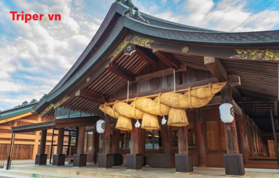 Izumo Taisha Shrine - ngôi đền được mệnh danh là cánh cổng dẫn lối đến thế giới của các vị thần. Hình ảnh ngôi đền Izumo Taisha với cuộn rơm trừ tà nặng tới 4,5 tấn chính là biểu tượng cho sự linh thiêng của vùng đất Shimane.