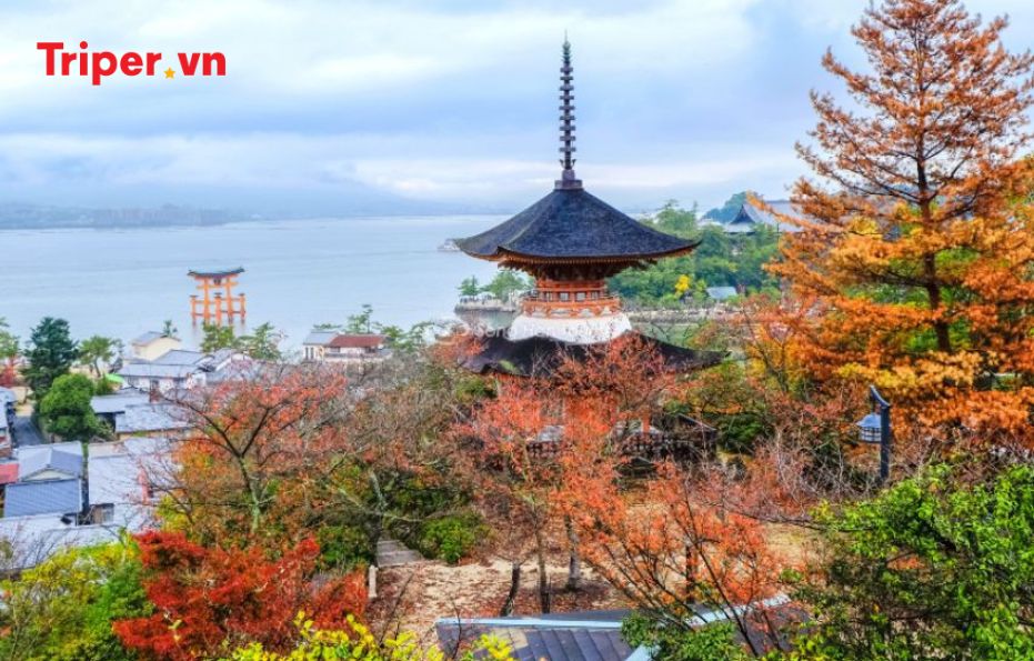 Điểm nhấn rực rỡ nhất chính là đảo Miyajima, nơi có chiếc cổng gỗ đỏ nổi trên mặt biển biểu tượng của Nhật Bản. Khi thu sang, toàn bộ hòn đảo như bốc cháy trong sắc đỏ của lá phong. Trải nghiệm đi cáp treo lên đỉnh núi Misen sẽ giúp bạn thu vào tầm mắt toàn cảnh thảm lá đỏ khổng lồ trải dài tới tận đại dương. Đừng quên thưởng thức ẩm thực đặc trưng với món hàu nướng béo ngậy và bánh nướng hình lá phong truyền thống để cảm nhận trọn vẹn phong vị địa phương.