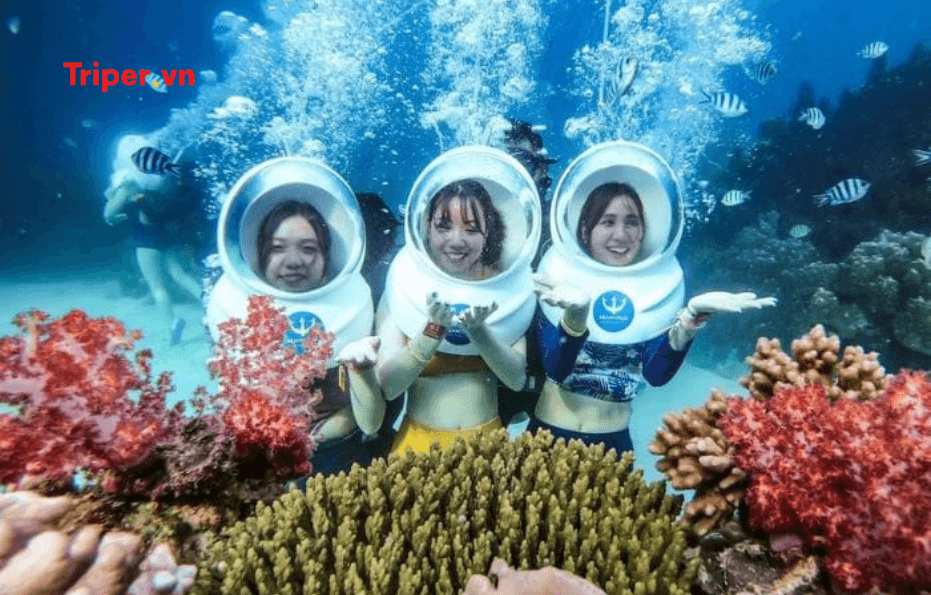 13h00: Du khách trải nghiệm dịch vụ đi bộ dưới biển ở khu bảo tồn san hô phía Nam đảo Phú Quốc (chi phí tự túc).