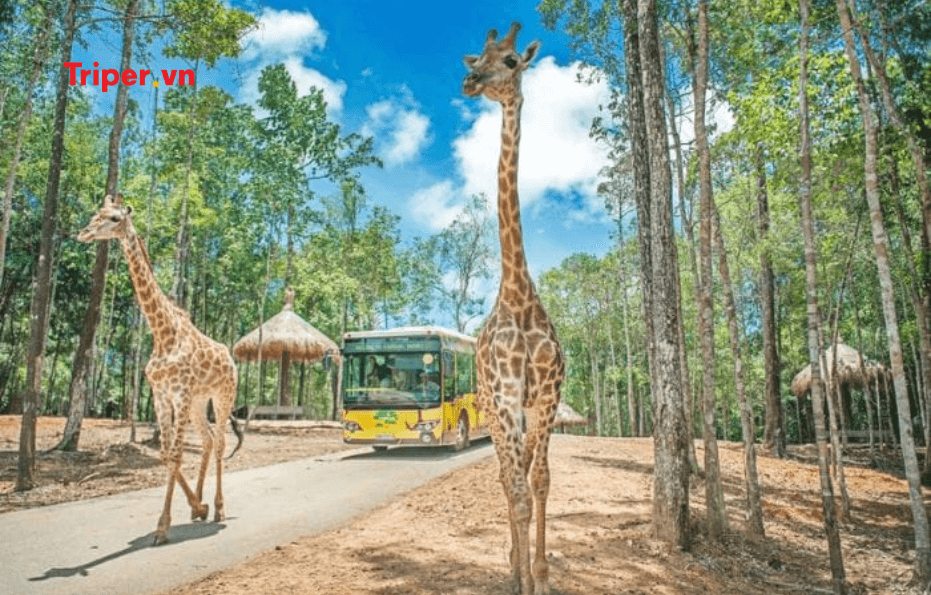 16h00: Khám phá Vinpearl Safari. Đi bộ và ngồi xe tham quan vườn thú, nơi chăm sóc, bảo tồn 3000 cá thể động vật với 150 chủng loại khác nhau.