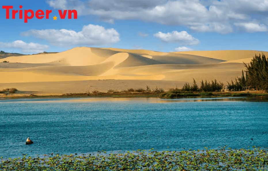 Đồi Cát Trắng – Hồ Sen: Tham quan đồi cát trắng rộng lớn, chiêm ngưỡng hồ sen xanh mát nằm giữa biển cát mênh mông. Tại đây, Quý khách trải nghiệm trò chơi trượt cát thú vị trước khi tiếp tục khám phá đồi cát bay.