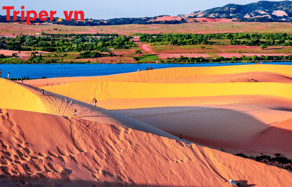 Đồi Cát Vàng: Còn được gọi là đồi cát bay, nơi hình dáng cồn cát thay đổi theo từng ngày, tạo nên vẻ đẹp độc đáo khó nơi nào sánh được. Đây là điểm check-in không thể bỏ qua khi du lịch Mũi Né, đặc biệt là khoảnh khắc ngắm hoàng hôn rực rỡ trên nền cát vàng óng ánh.