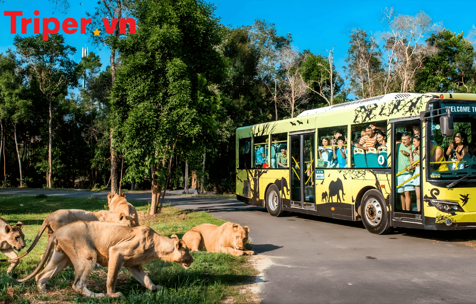 Trải nghiệm Nhốt người thả thú: Bạn sẽ ngồi trên xe bus chuyên dụng, ngăn cách với những chúa sơn lâm hay đàn tê giác lầm lì chỉ bằng một lớp kính cường lực. Cảm giác nhìn thẳng vào mắt một chú hổ vằn hay thấy bầy sư tử thư thái nằm sưởi nắng ngay sát cạnh xe là một trải nghiệm du lịch Phú Quốc không thể nào quên.